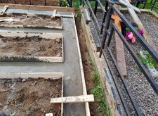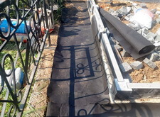 Подготавливаем территорию вокруг места захоронения к покрытию брусчаткой: ввариваем металлическую полосу и укрываем землю геотекстилем.